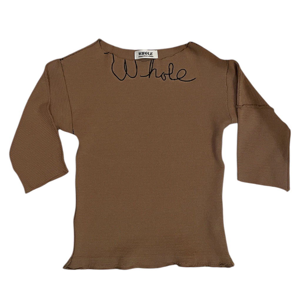 100% mustard green cotton thermal with gold embroidery and quarter length sleeves. Cut and re-sewn from dead stock WHOLE item by CD 1974. One of one item.